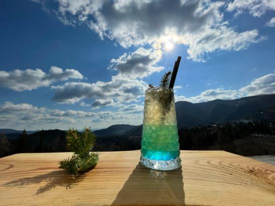 Die Idee zu unserer Eigenkreation entstand durch die Kreativität, die in unserem Team herrscht. Der Maracujasirup Monin steht für alle tropischen Länder. Der Agavensirup Monin soll einen südamerikanischen Flair reinbringen. Brasilianische Säure bringt ein frisch gepresster Limettensaft. Der Blue Curacao Monin für die Farbe. Der Almdudler und der Fichtenzweig sollen als Zeichen für Österreich stehen. So sind die schönsten Kulturen miteinander verbunden. Sie sind völlig unterschiedlich und harmonieren perfekt.