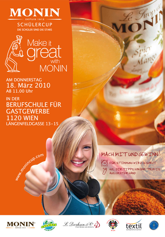 In traditioneller Weise fand der 5. Monin Schülercup in der Gewinnerschule des Vorjahres statt, in der Berufsschule für Gastgewerbe Längenfeldgasse Wien12.