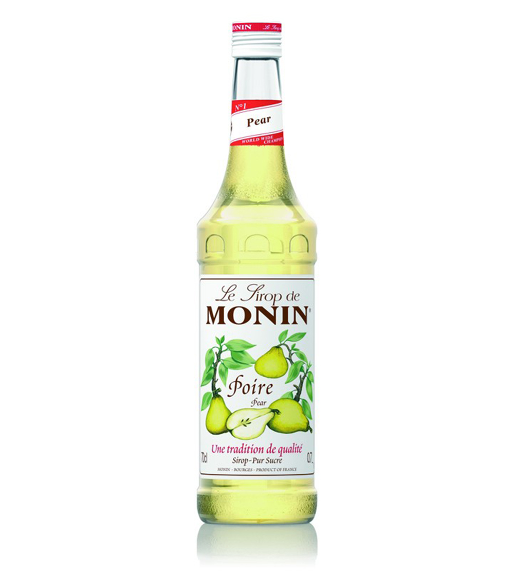 MONIN Sirup Birne zeigt hat das köstlich reife Williams Birne Aroma und ist sehr fein in Cocktails, Desserts und Smoothies.